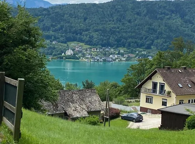 Waldhaus Hirsch Bungalow Only For You Self Check In Pörtschach am Wörthersee med 1 sovrum, som ligger cirka 25 minuters gångavstånd från Wörthersee, erbjuder en terrass med utsikt över bergen.